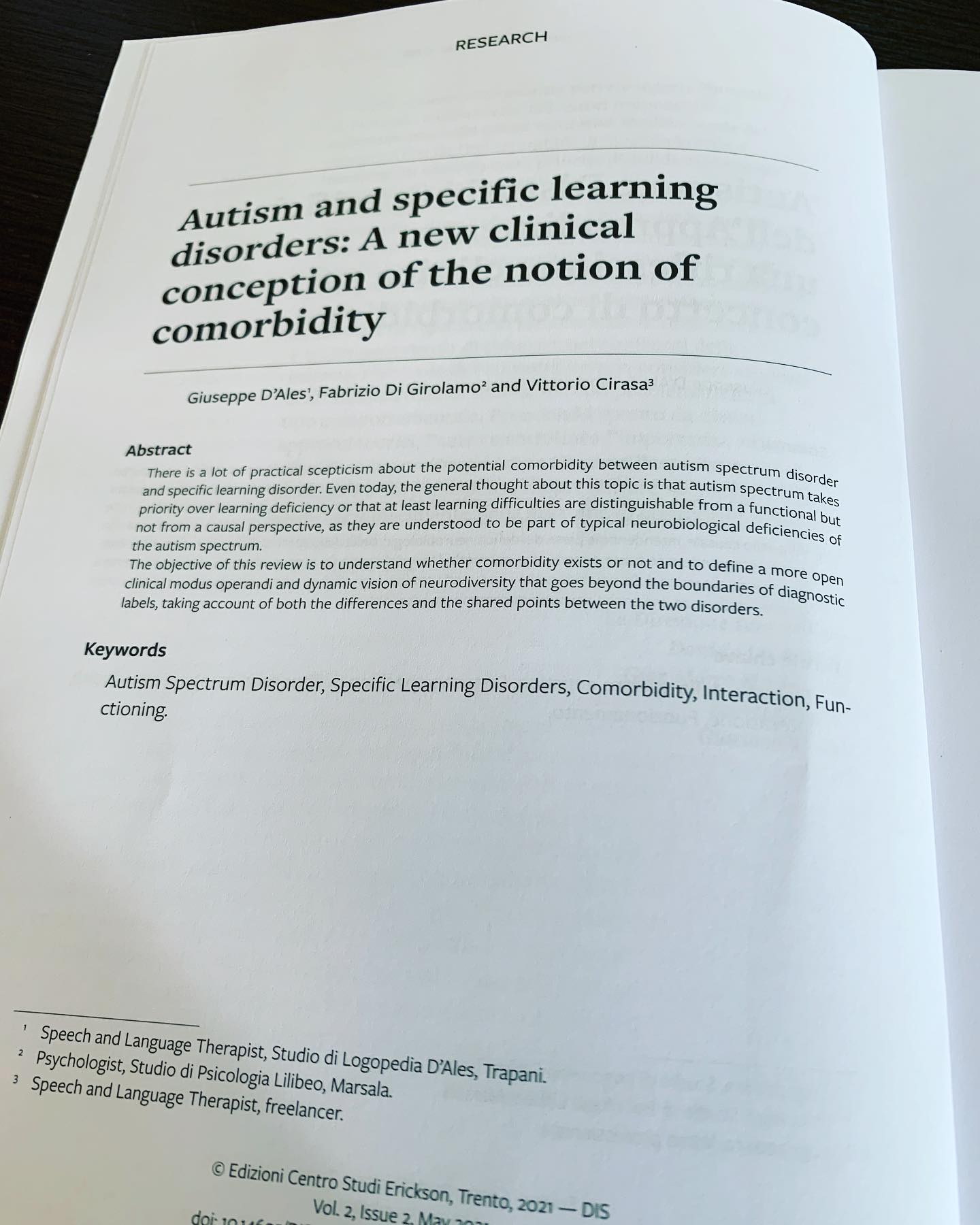 PUBBLICATO ARTICOLO SU DIS- GIORNALE ITALIANO DI RICERCA CLINICA E APPLICATIVA